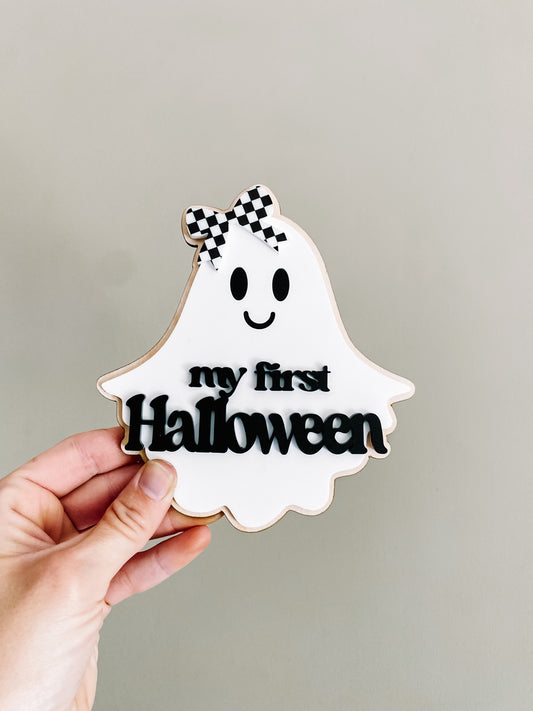 Baby's 1st Halloween Milestone Sign - Checkered Ghost
