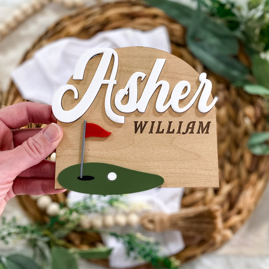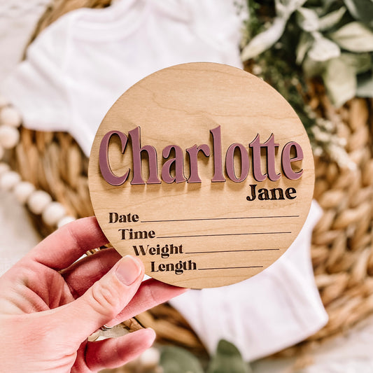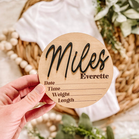 3D Wood Birth Stat Circle Thin Cursive - Custom with Name