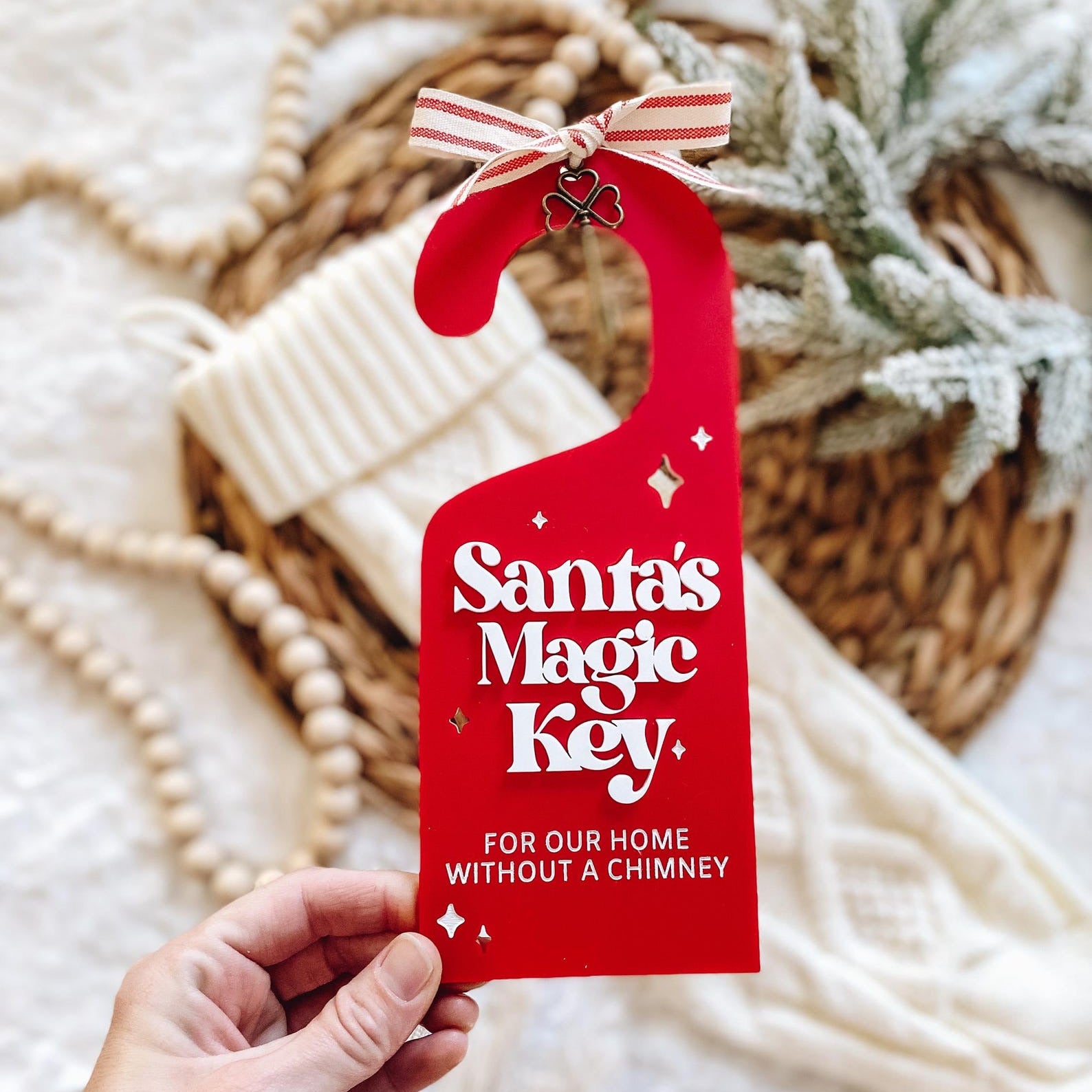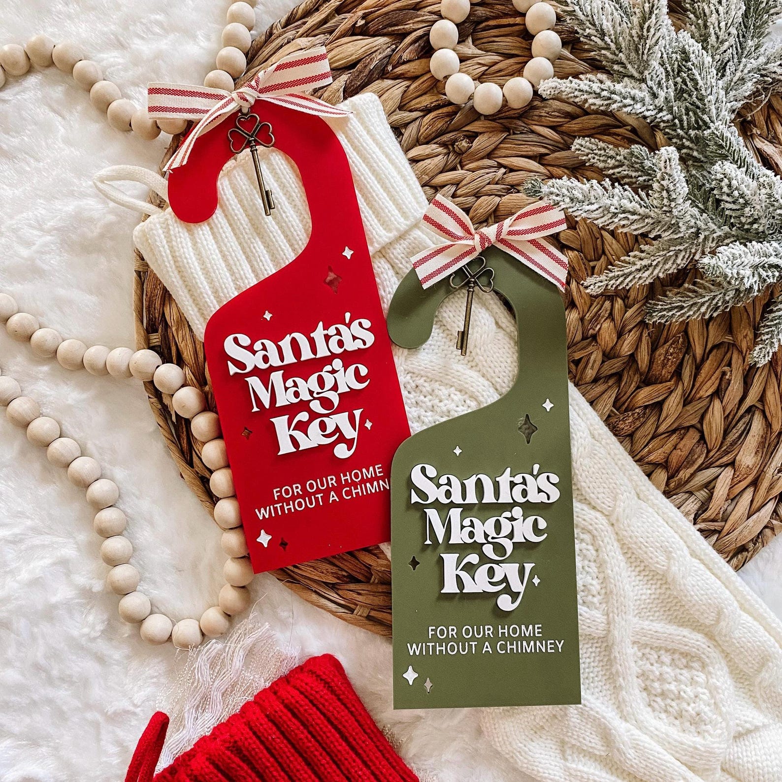 When Santa can't find a chimney, this charming door hanger comes to the rescue! Featuring an engraved acrylic design paired with a vintage-style key, it's the perfect solution for homes without traditional entry points. Hang it on your doorknob Christmas Eve and watch your little ones' faces light up as they discover Santa's secret way inside. A delightful keepsake that transforms the holiday magic into an unforgettable family moment. 🎅✨